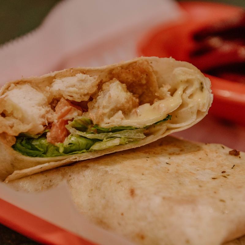 Grilled or fried chicken with lettuce, tomato & honey mustard in a flour tortilla. Served with your choice of side. Toss in your favorite wing sauce +$1.00 | Add Bacon +$1.00 | Add Cheese +$0.50